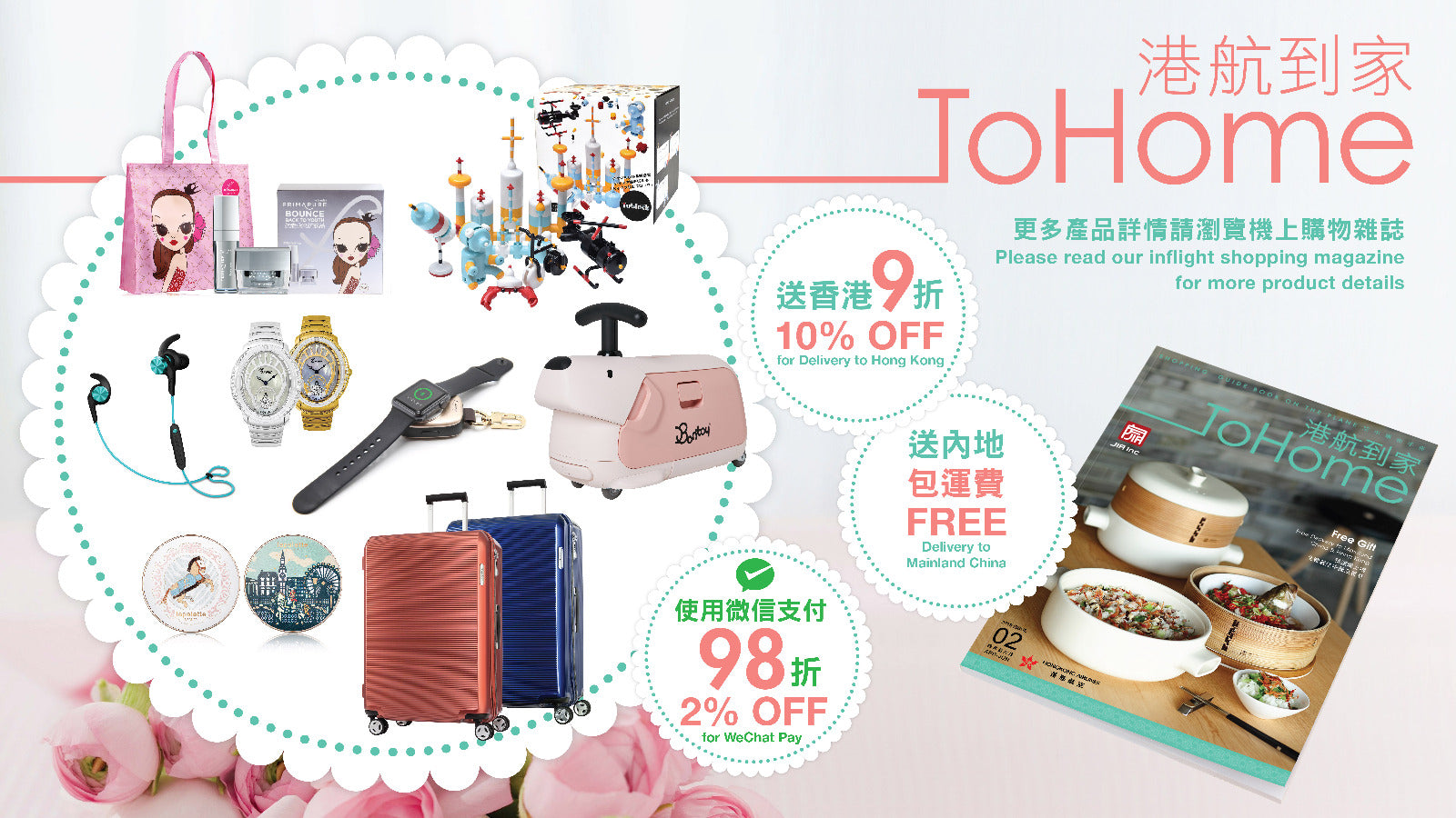 While you are on board, remember to check us out on ToHome magazine. Hong Kong Airlines is offering 10% off for delivery to Hong Kong and FREE delivery to Mainland China. You can always go shopping while you are travelling.