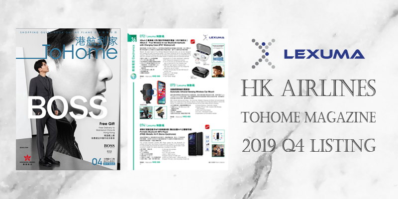 Lexuma latest gadgets are now available at 2019 Q4 HK Airlines ToHome Magazine, alongside at Hong Kong Airlines ToHome online shopping platform. We have been listing electronic gadgets at HK Airlines since 2018 Q2. This time, we will be offering our newly designed true wireless earphones, premium wireless charging car mount and portable Bluetooth MP3 player in this quarter: