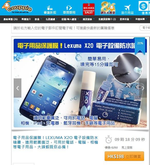 Lexuma X2O waterproof spray is now available at Couppie and GroupBuya HK online shopping platforms