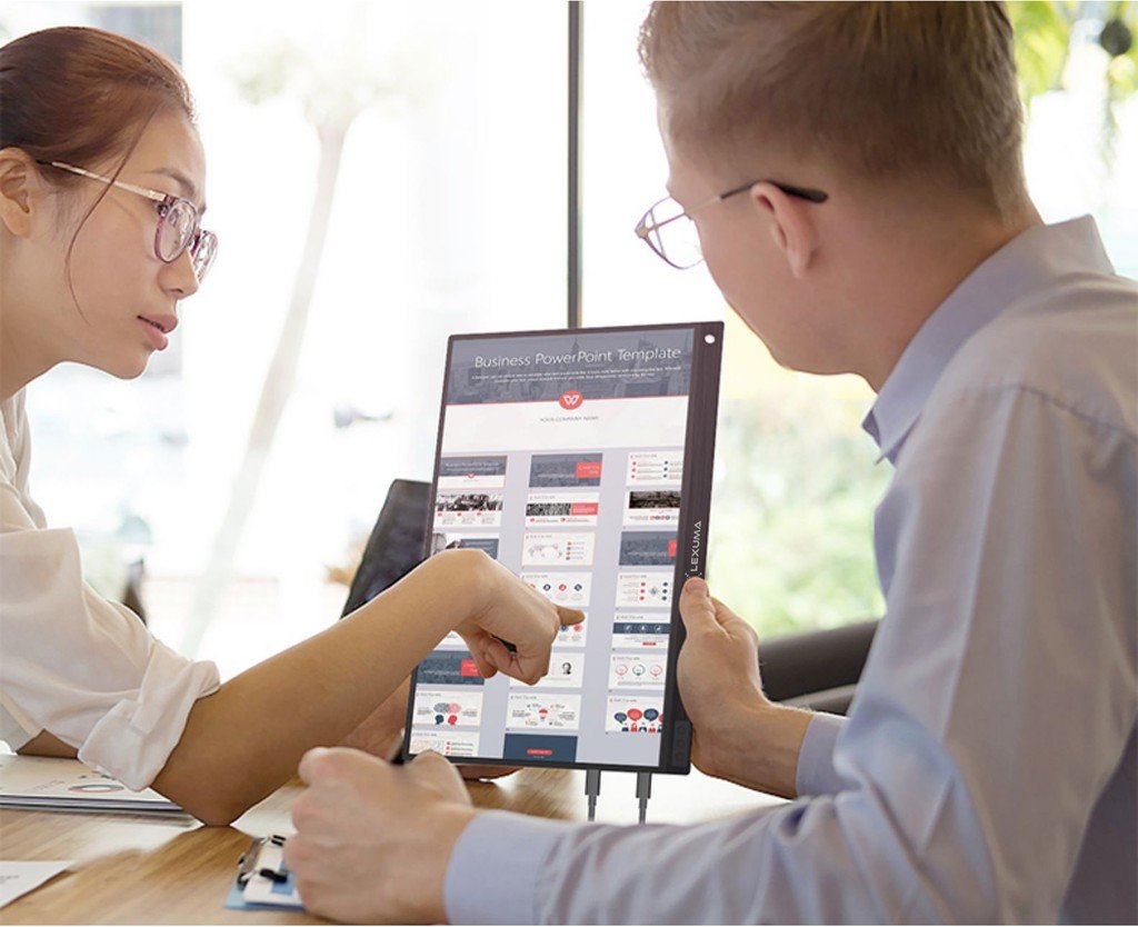 Most of the latest portable monitors are light and slim. Such as Lexuma' s portable screen - XScreen. A 15.6" large touch screen with 9mm thick and about 0.7 kg weight. Just portable as an iPad. Bring a laptops and a portable screen is still convenient. You can present your ideas anytime anywhere.